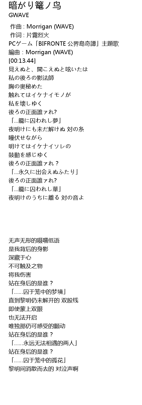 | [00:00.000] | zuo qu : Morrigan WAVE |