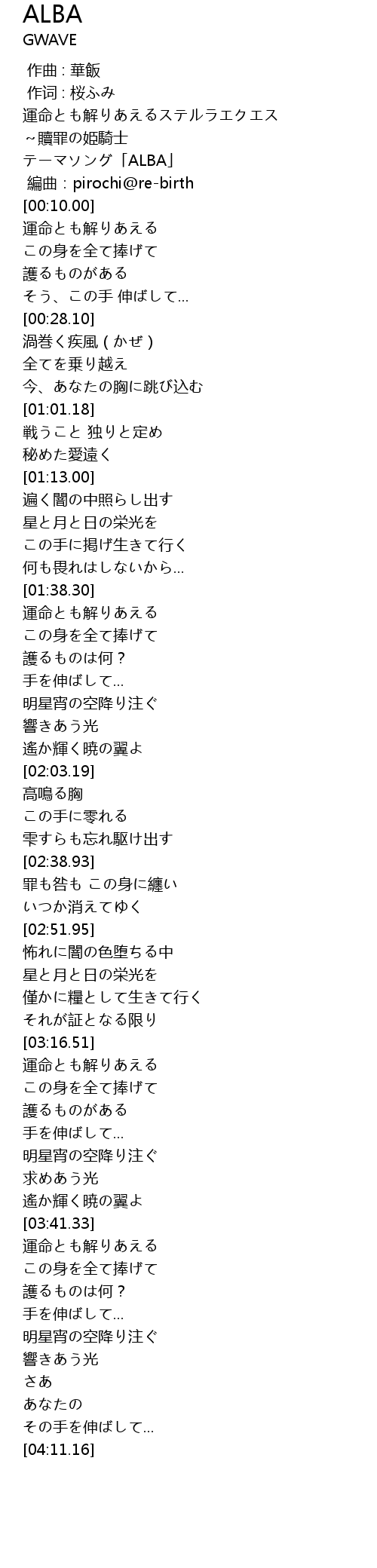 | [00:03.00] | テーマソング「ALBA」 |