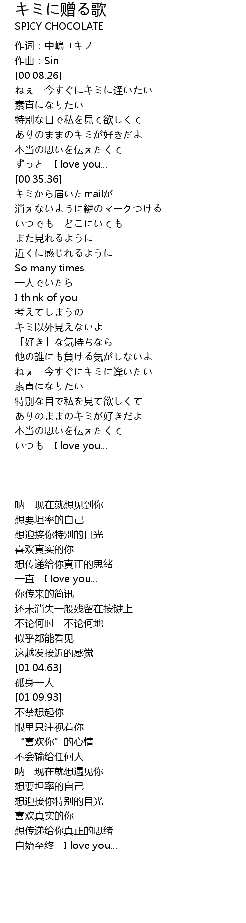 | [01:34.55] | ありのままのキミが好きだよ |