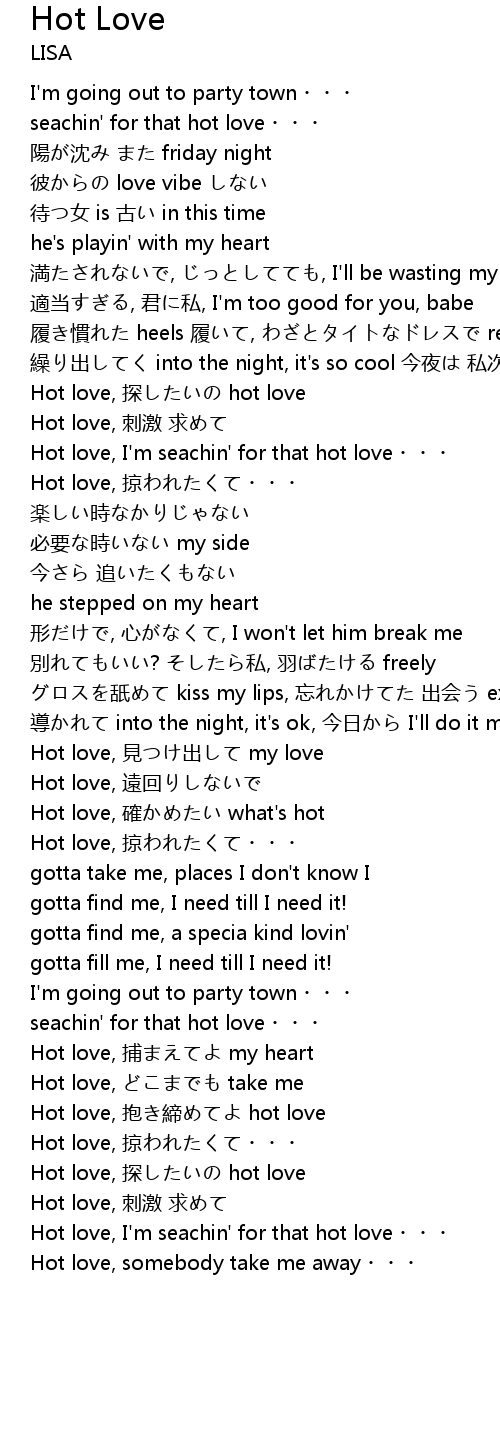 | Hot love, I'm seachin' for that hot love・・・ | |