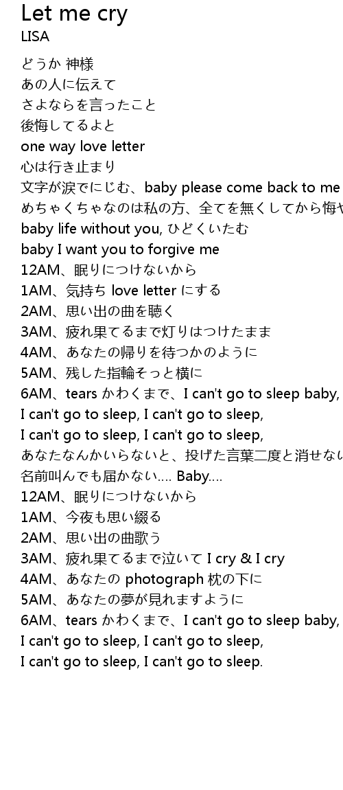 | 6AM、tears かわくまで、I can't go to sleep baby, no I | |