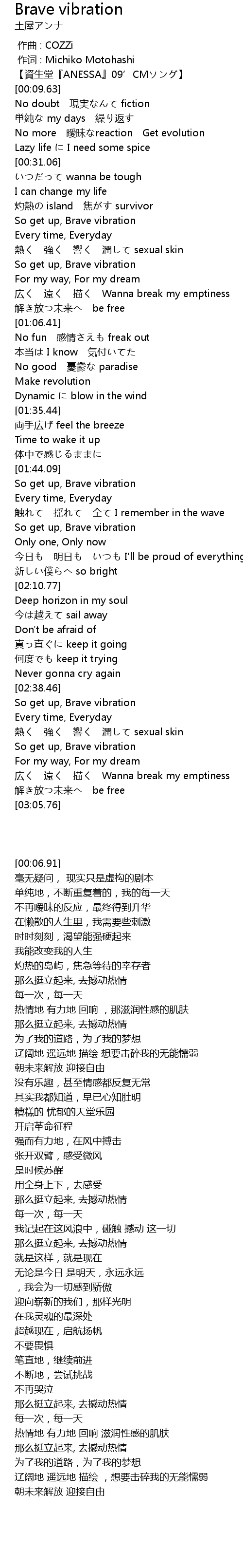 | [02:48.59] | So get up, Brave vibration |