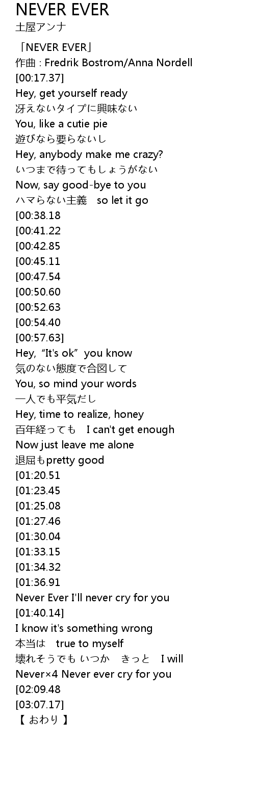 | [00:01.37] | NEVER EVER |