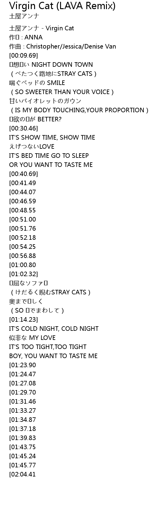 | [00:01.69] | 土屋アンナ - Virgin Cat |
