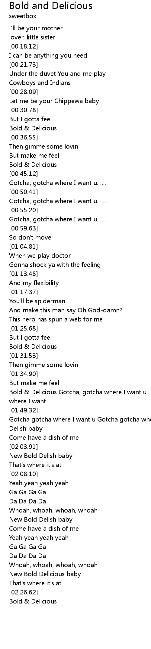 | [01:37.65] | Bold & Delicious Gotcha, gotcha where I want u…… Gotcha, gotcha where I want |