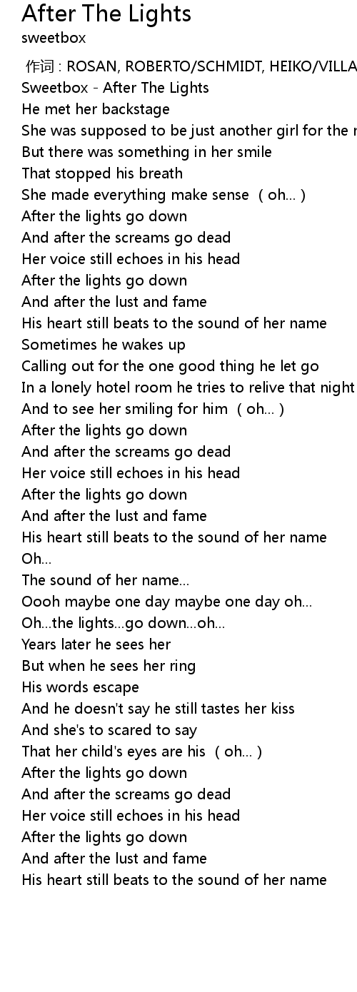 | [01:58.07] | Oh... the lights... go down... oh... |