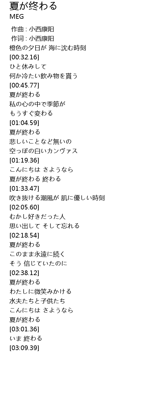 | [02:22.03] | 夏が終わる |
