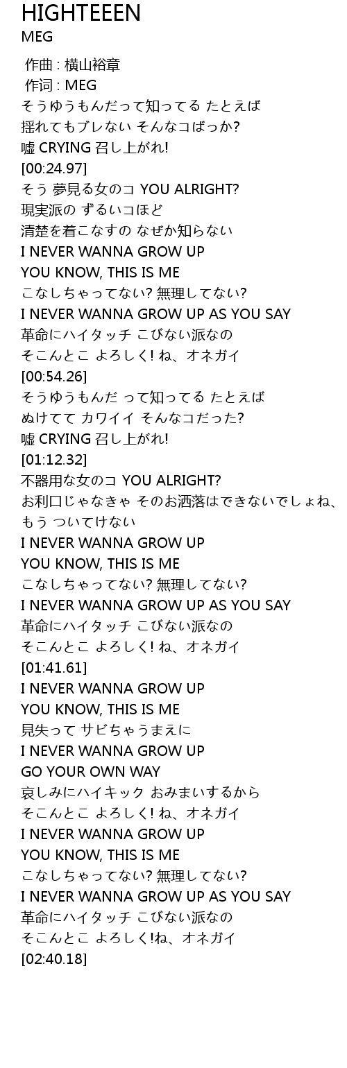 | [02:14.03] | I NEVER WANNA GROW UP |