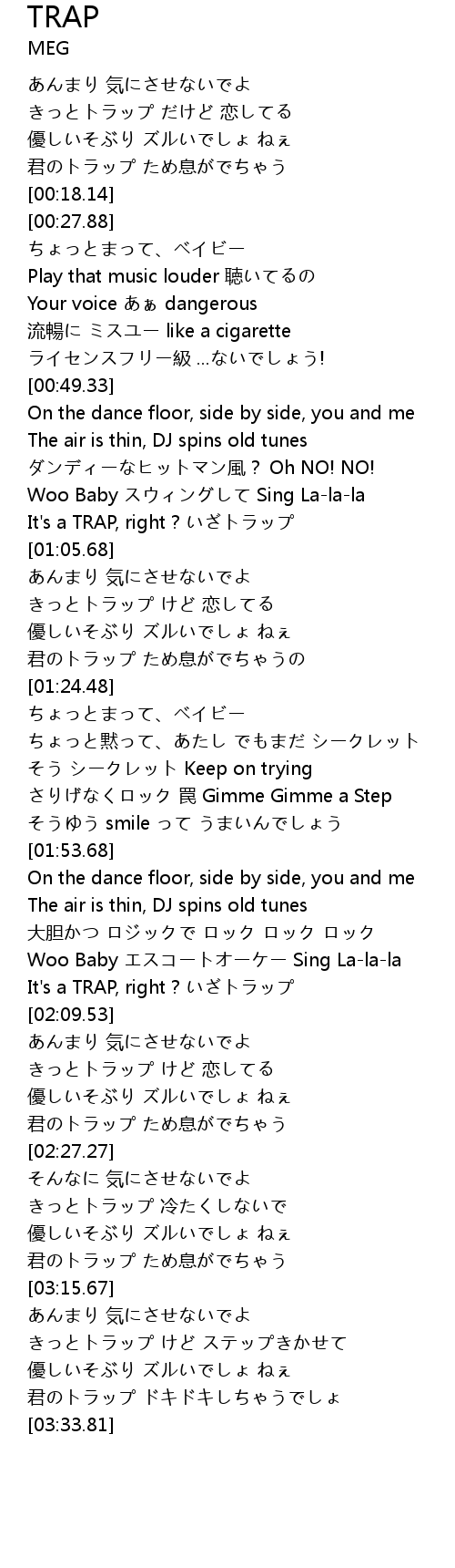 | [02:23.02] | 君のトラップ ため息がでちゃう |