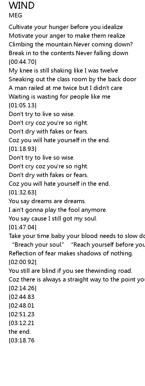 | [01:19.17] | Don't try to live so wise. |