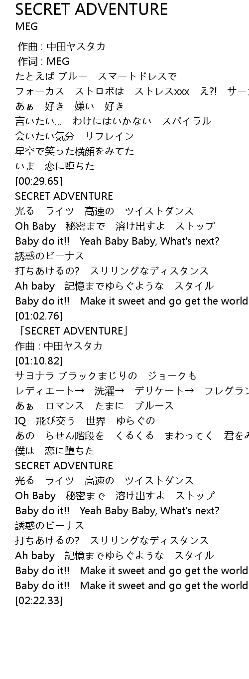 | [01:04.82] | 「SECRET ADVENTURE」 |