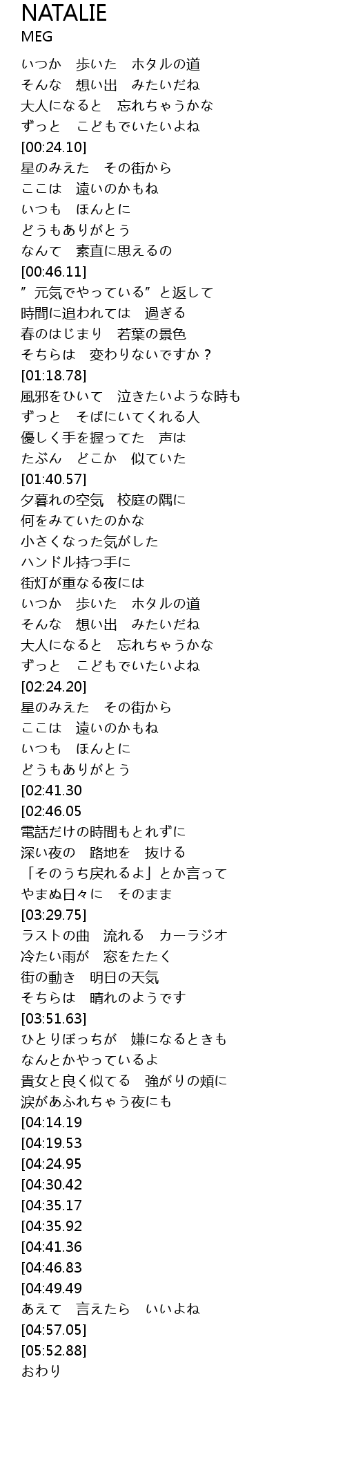 | [02:03.26] | いつか 歩いた ホタルの道 |