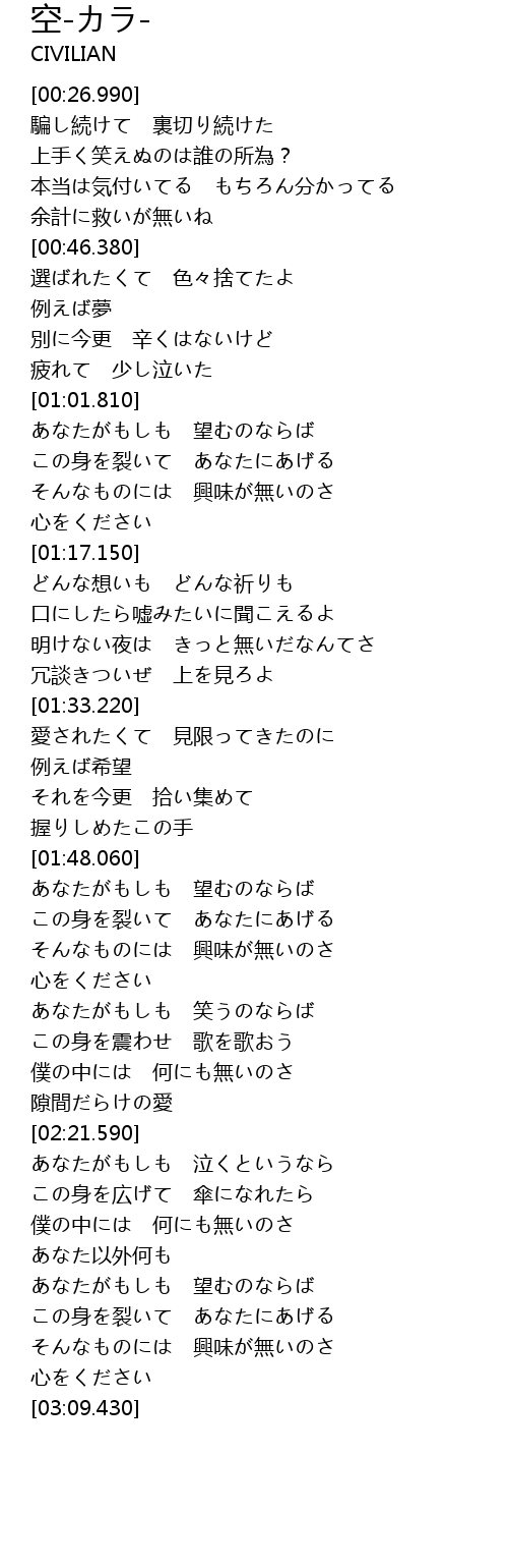 | [02:43.280] | 僕の中には 何にも無いのさ |