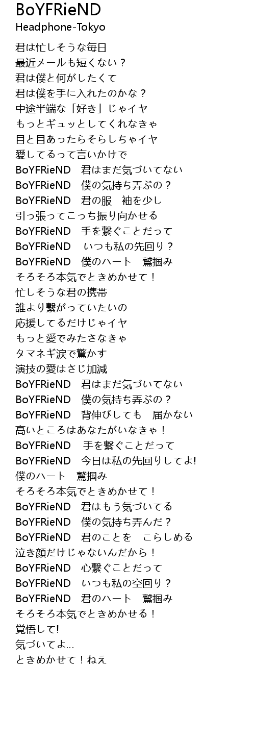 | [02:53.330] | BoYFRieND 心繋ぐことだって |