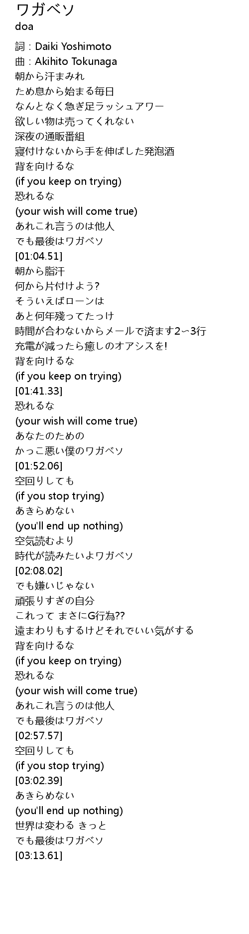 | [01:01.44] | でも最後はワガベソ |