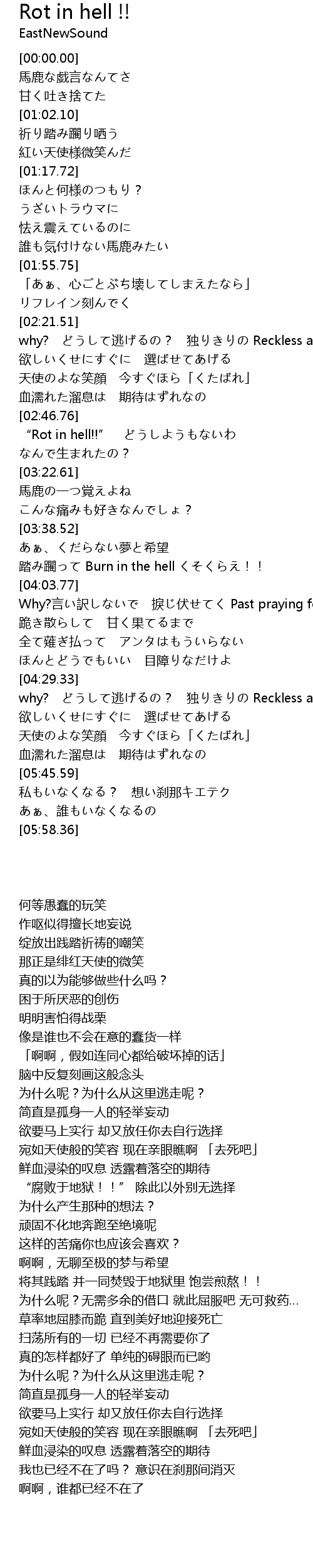 | [03:51.15] | 踏み躙って Burn in the hell くそくらえ!! |
