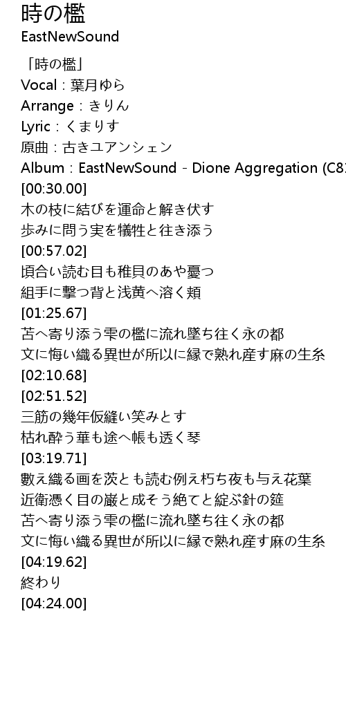 | [00:25.00] | Album:EastNewSound - Dione Aggregation (C81) |
