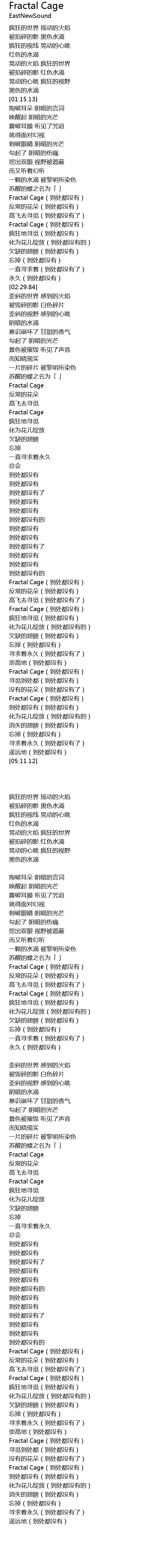 | [02:04.60] | Fractal Cage(到处都没有) |