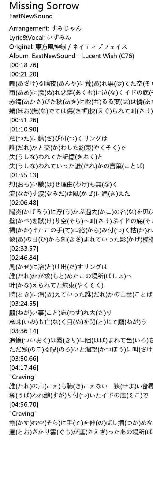 | [00:15.80] | Album: EastNewSound - Lucent Wish (C76) |