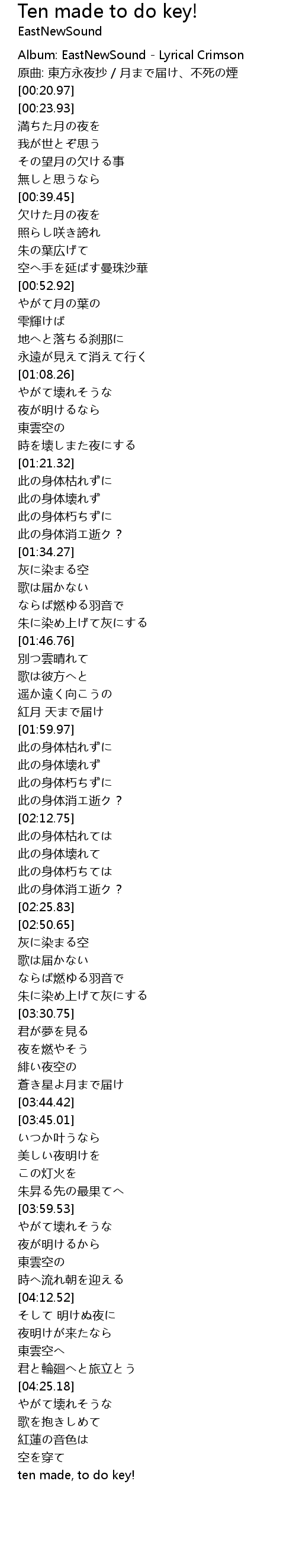 | [00:11.22] | Album: EastNewSound Lyrical Crimson |