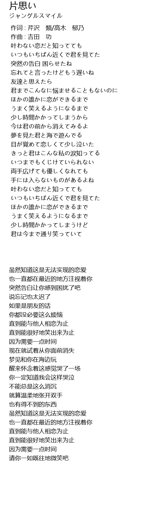 | [03:29.996] | いつもいちばん近くで君を見てた |
