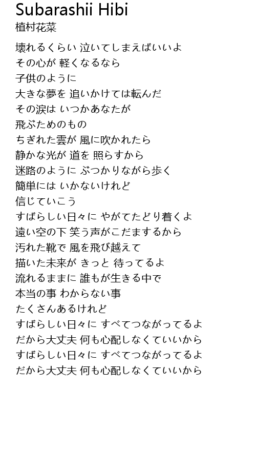 | [03:02.20] | すばらしい日々に すべてつながってるよ |