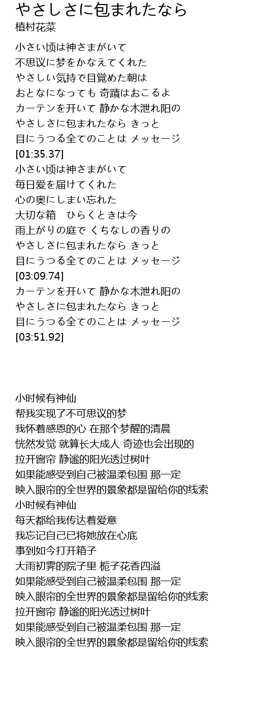 やさしさに包まれたなら きっと |