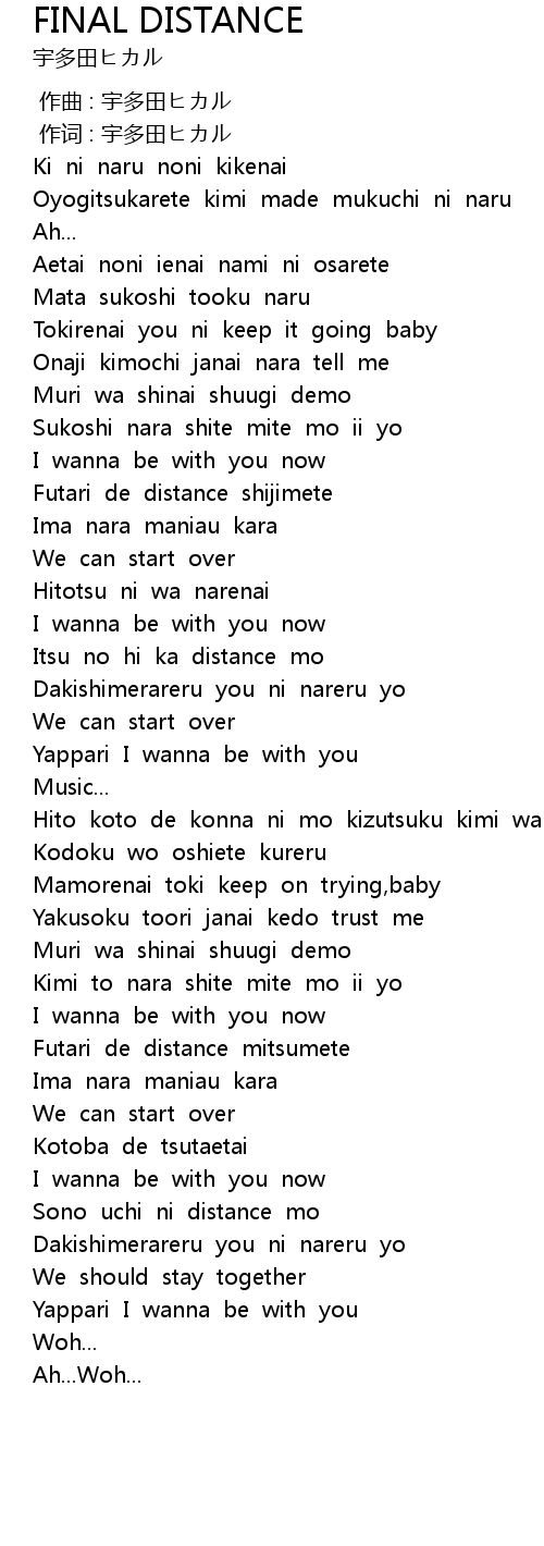 | [00:01.00] | 作词 : 宇多田ヒカル |
