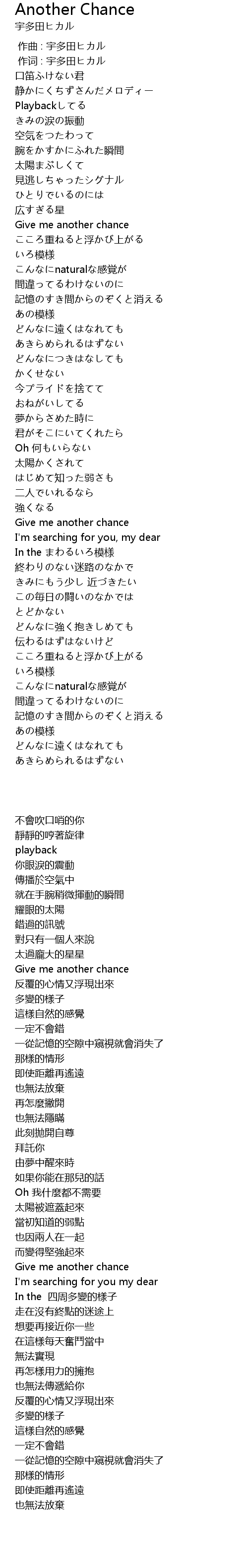 | [00:01.00] | 作词 : 宇多田ヒカル |