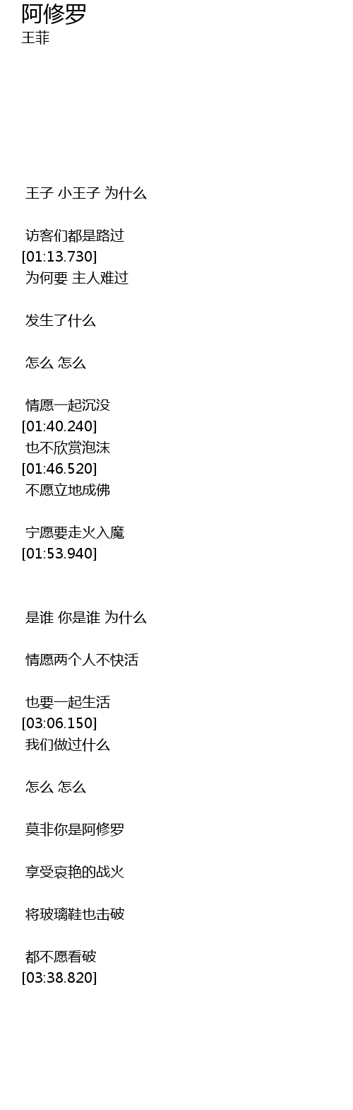 | [03:20.0] | 莫非你是阿修罗 |