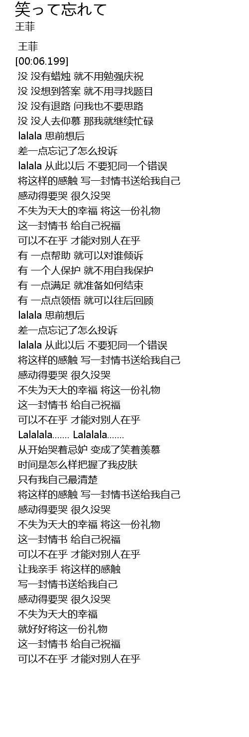 | [00:41.199] | lalala 从此以后 不要犯同一个错误 |