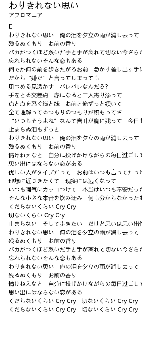| くだらないくらい Cry Cry 切ないくらい Cry Cry |