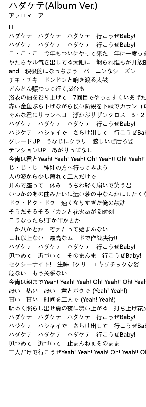 | ハダケテ ハダケテ ハダケテ 行こうぜBaby! | |