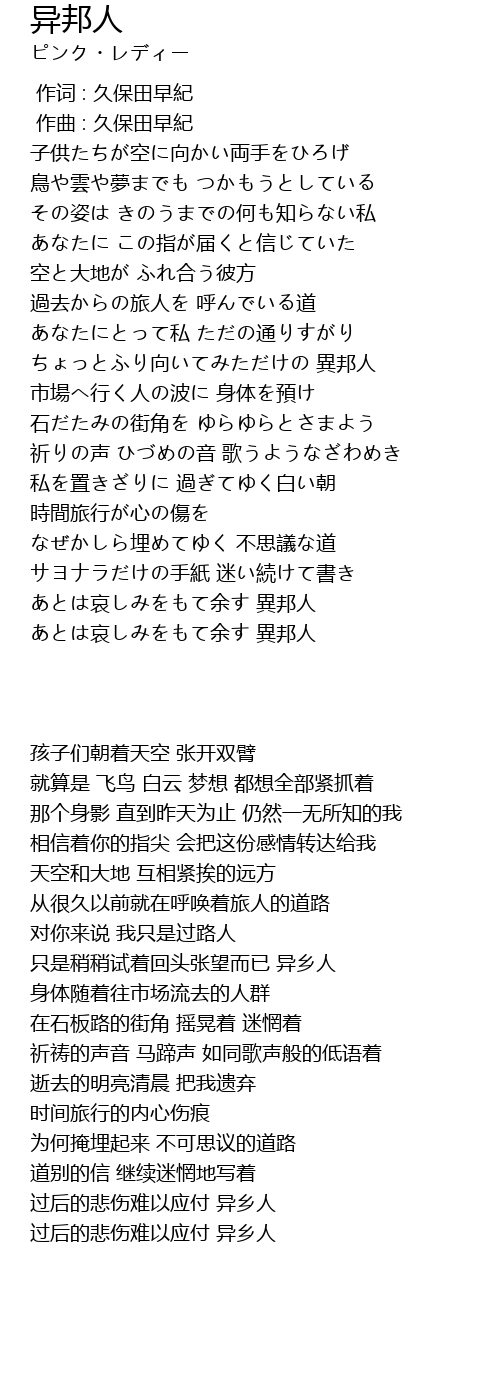 | [03:04.882] | あとは哀しみをもて余す 異邦人 |