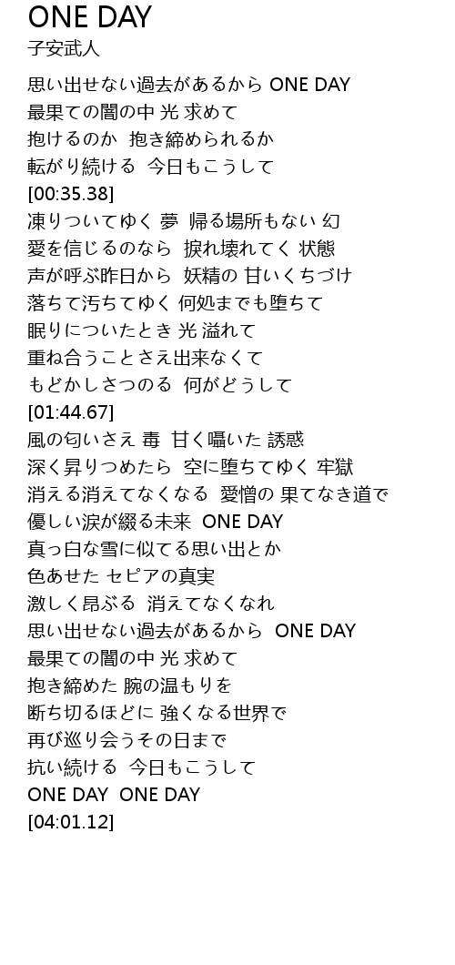 | [00:10.28] | sī chū guò qù ONE DAY |