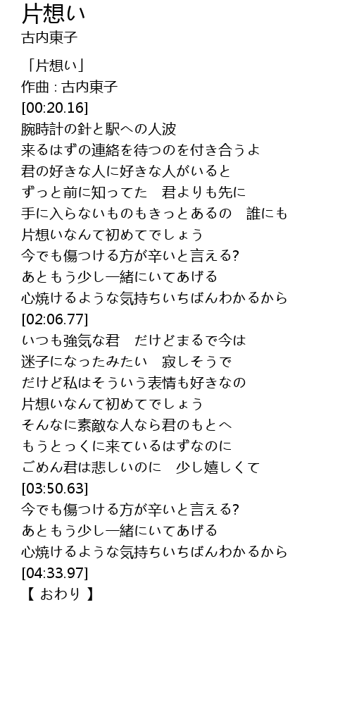 | [00:42.73] | 君の好きな人に好きな人がいると |
