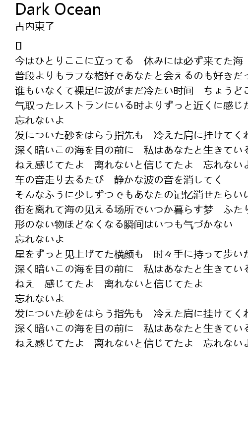 | 深く暗いこの海を目の前に 私はあなたと生きていること | |