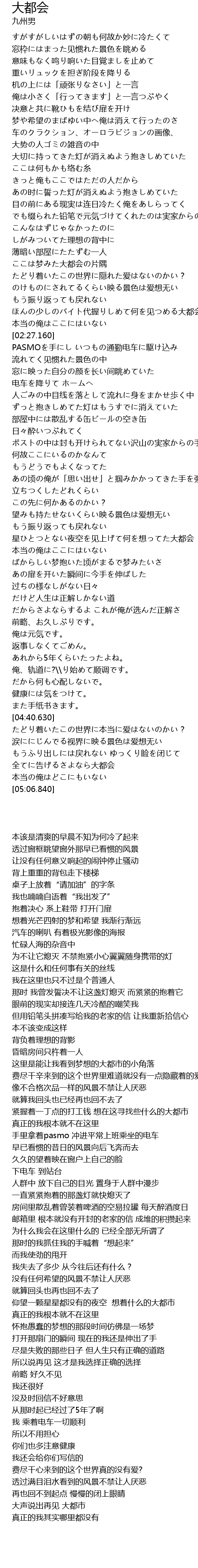 | [02:29.370] | PASMOを手にし いつもの通勤电车に駆け込み |