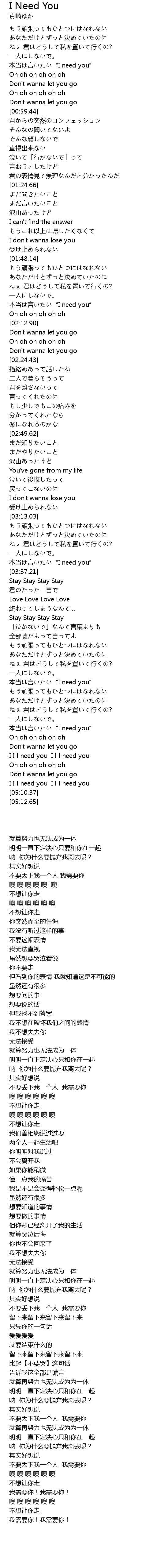 | [04:44.01] | 本当は言いたい“I need you” |