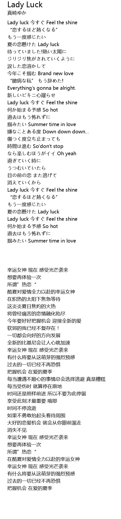 | [02:33.590] | 夏の恋懸けた Lady luck |