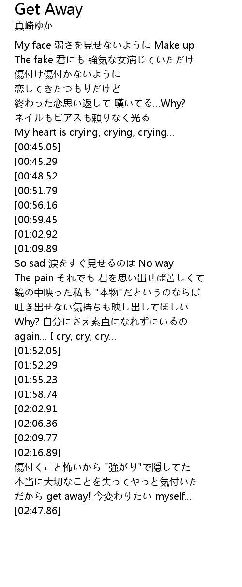 | [02:41.79] | だから get away! 今変わりたい myself... |