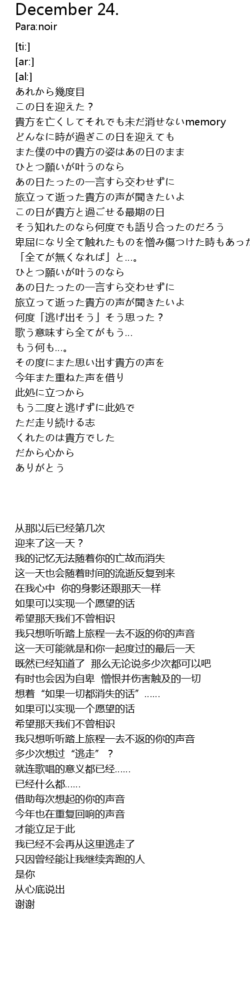 | [01:45.02] | この日が貴方と過ごせる最期の日 |
