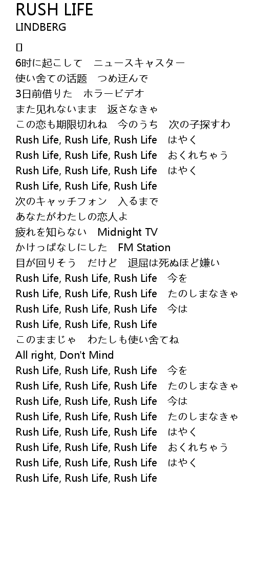| Rush Life, Rush Life, Rush Life はやく | |