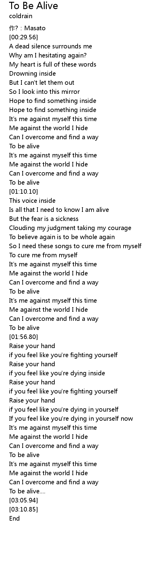 | [00:58.58] | To be alive |
