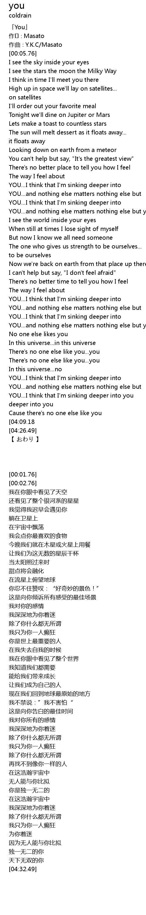 | [02:28.45] | YOU...and nothing else matters nothing else but you |