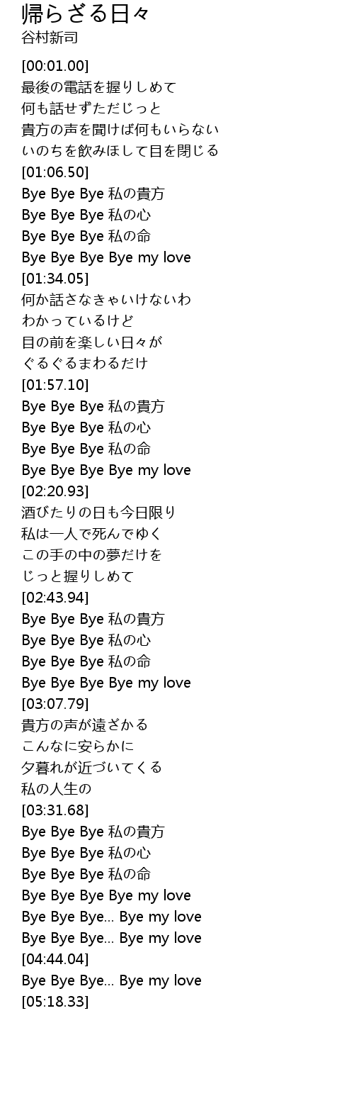 | [03:49.03] | Bye Bye Bye 私の命 |