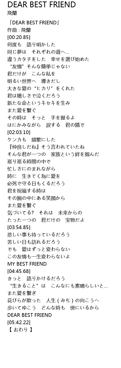 「DEAR BEST FRIEND」 |