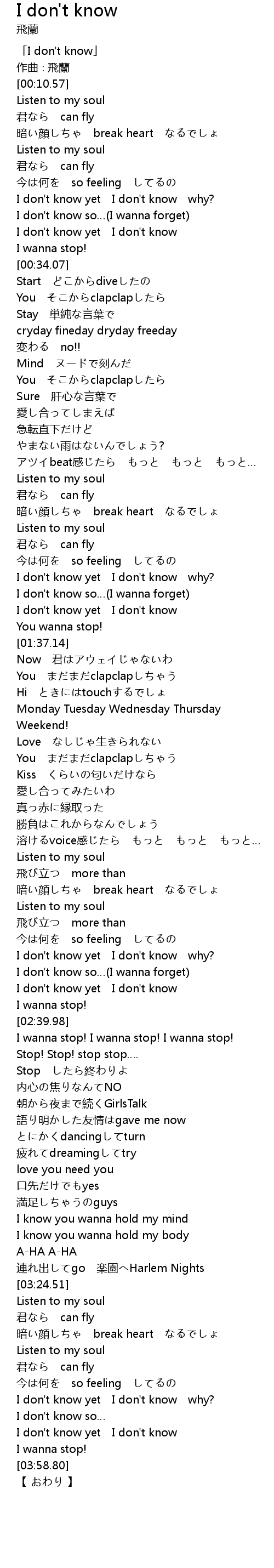 | [00:02.57] | 「I don't know」 |