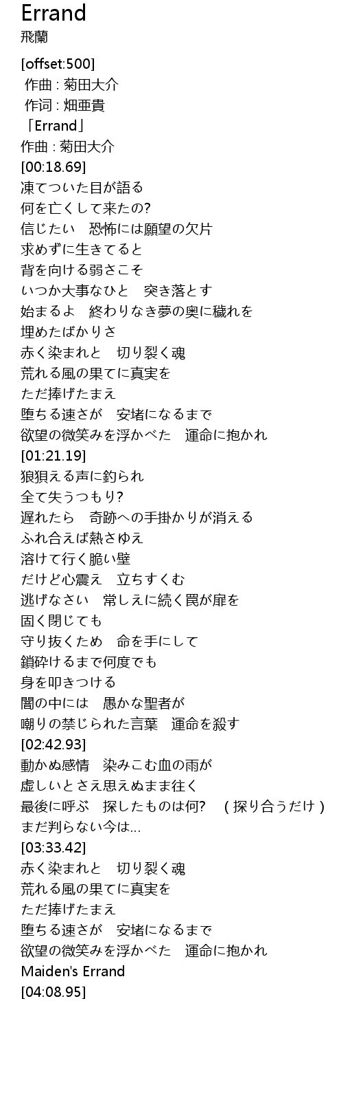 | [00:01.69] | 「Errand」 |