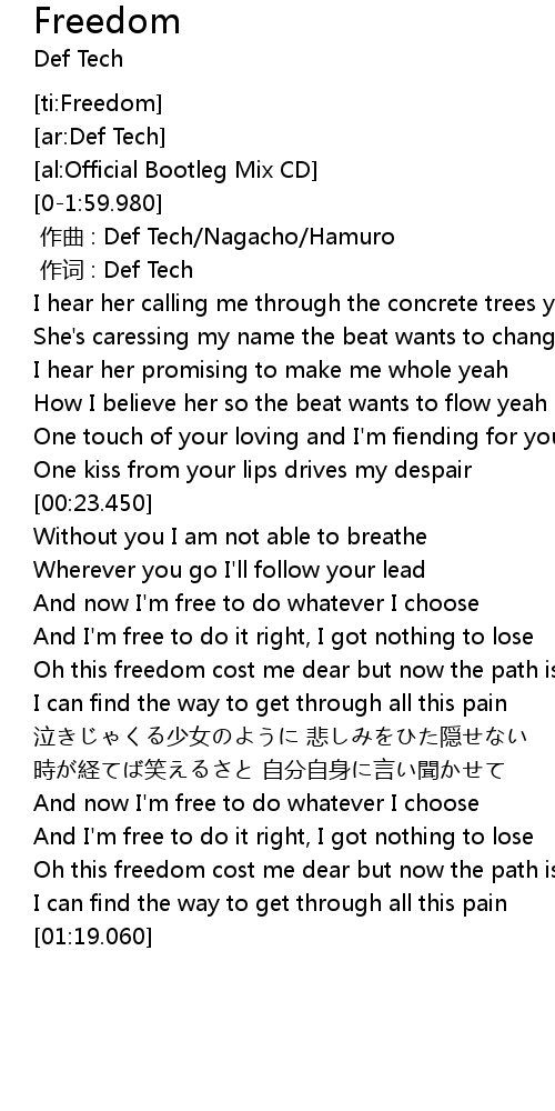 | [00:31.090] | And now I' m free to do whatever I choose |